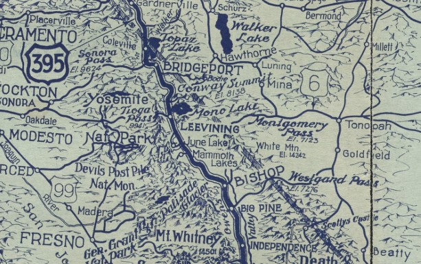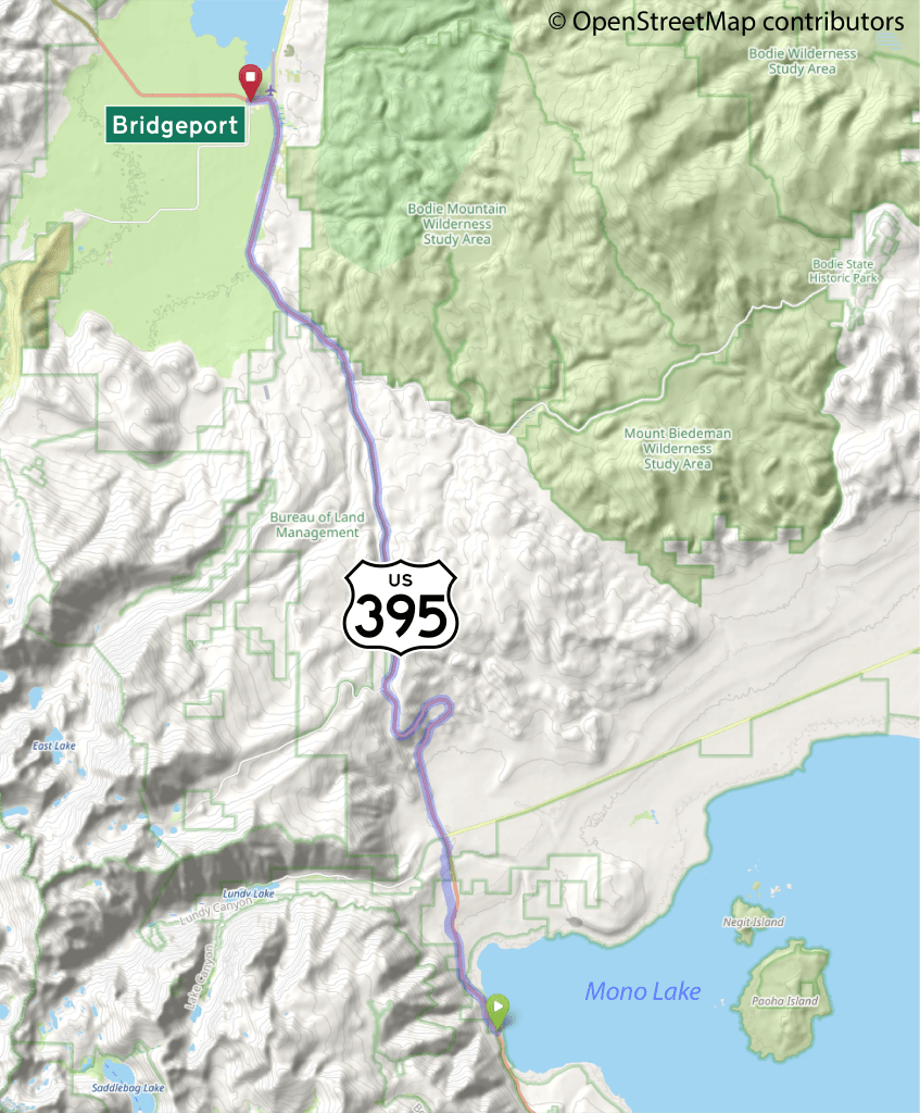 This American auto trail explores California’s Eastern Sierra, from Mono Lake north to Bridgeport in Mono County.
