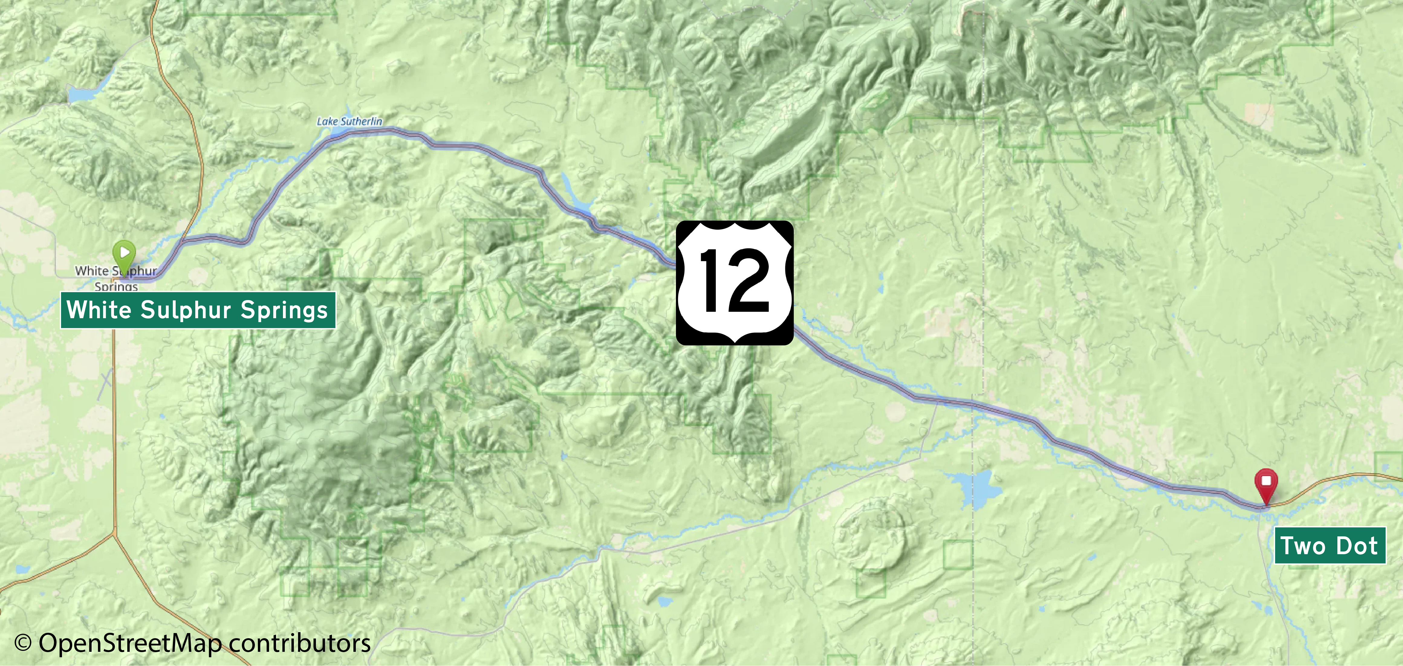 This American auto trail explores a section of U.S. Highway 12, from White Sulphur Springs to Two Dot, in Central Montana.