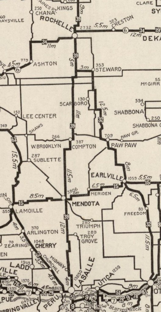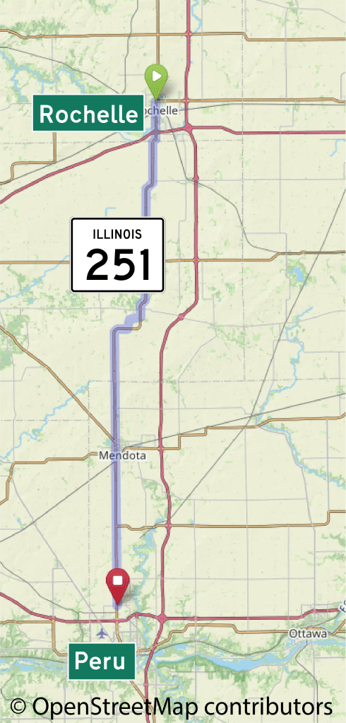 This American auto trail follows the earlier route of U.S. Highway 51, now designated as Illinois 251, south from Rochelle to Peru.