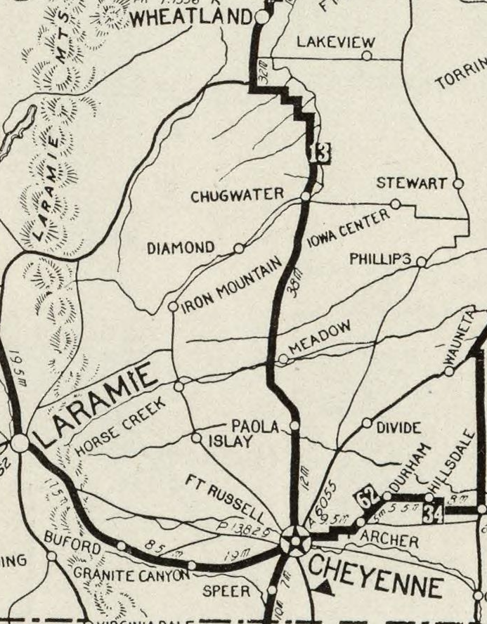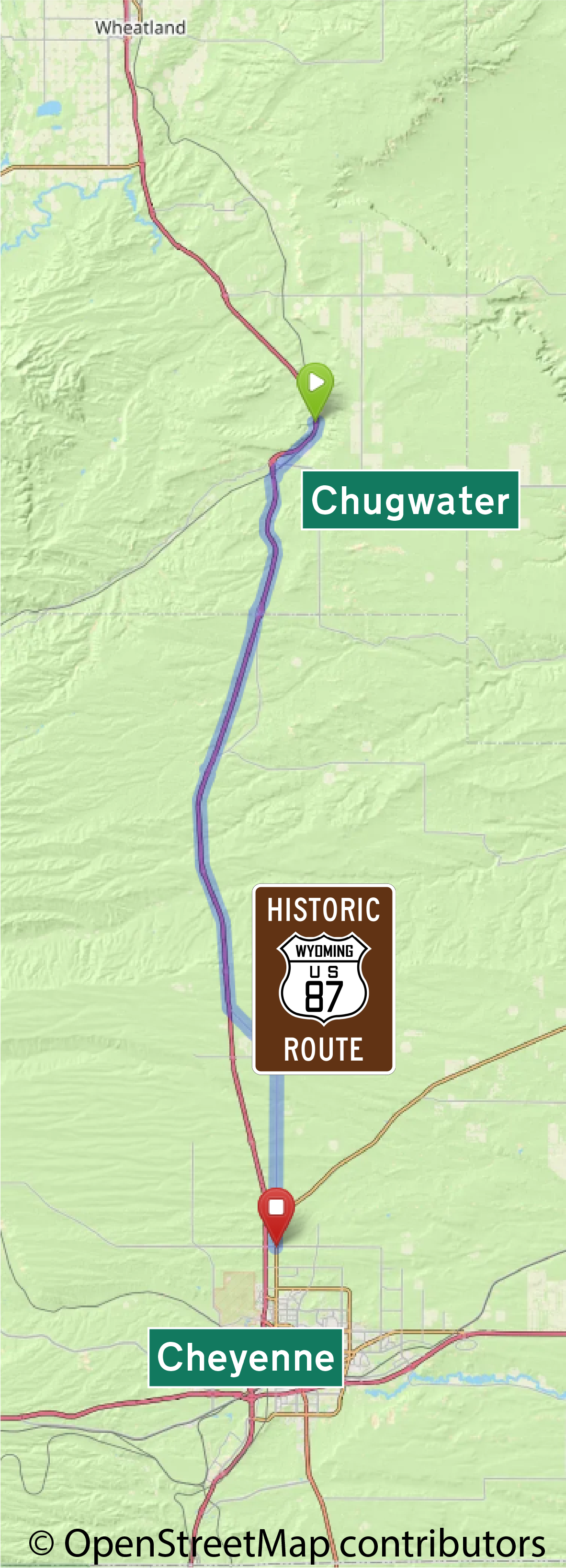 This American auto trail begins at Chugwater, Wyoming, and follows the historic route of U.S. Highway 87 south to Cheyenne.
