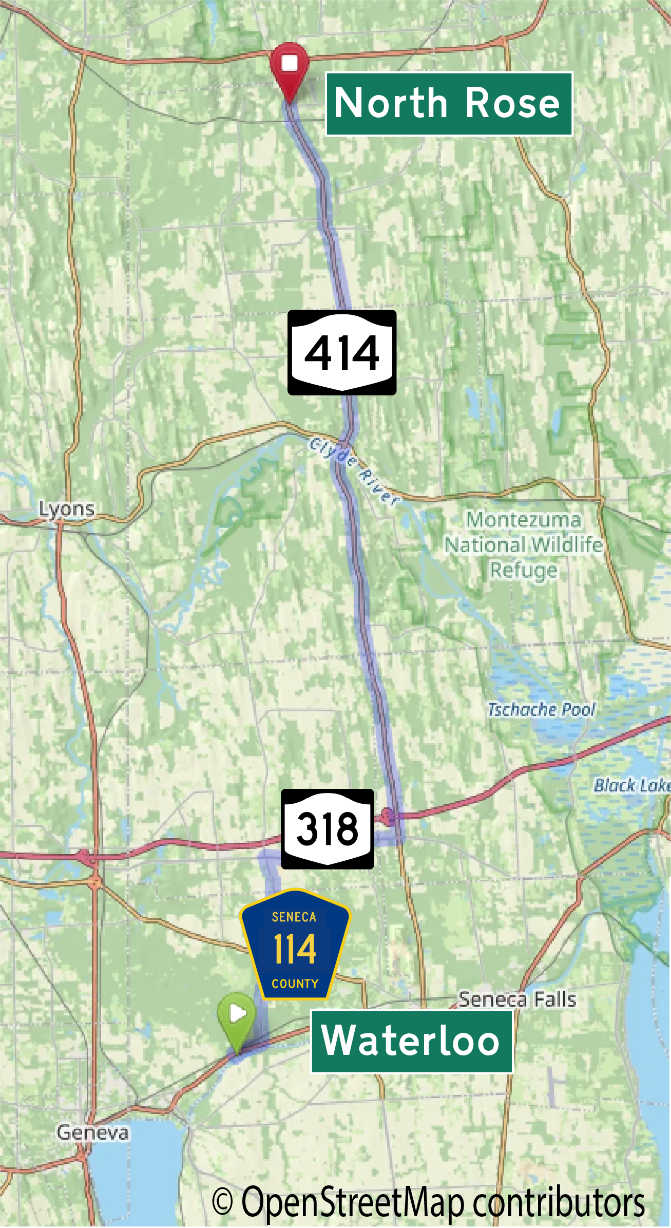 This American auto trail explores a section of central Upstate New York, from Waterloo north to North Rose.