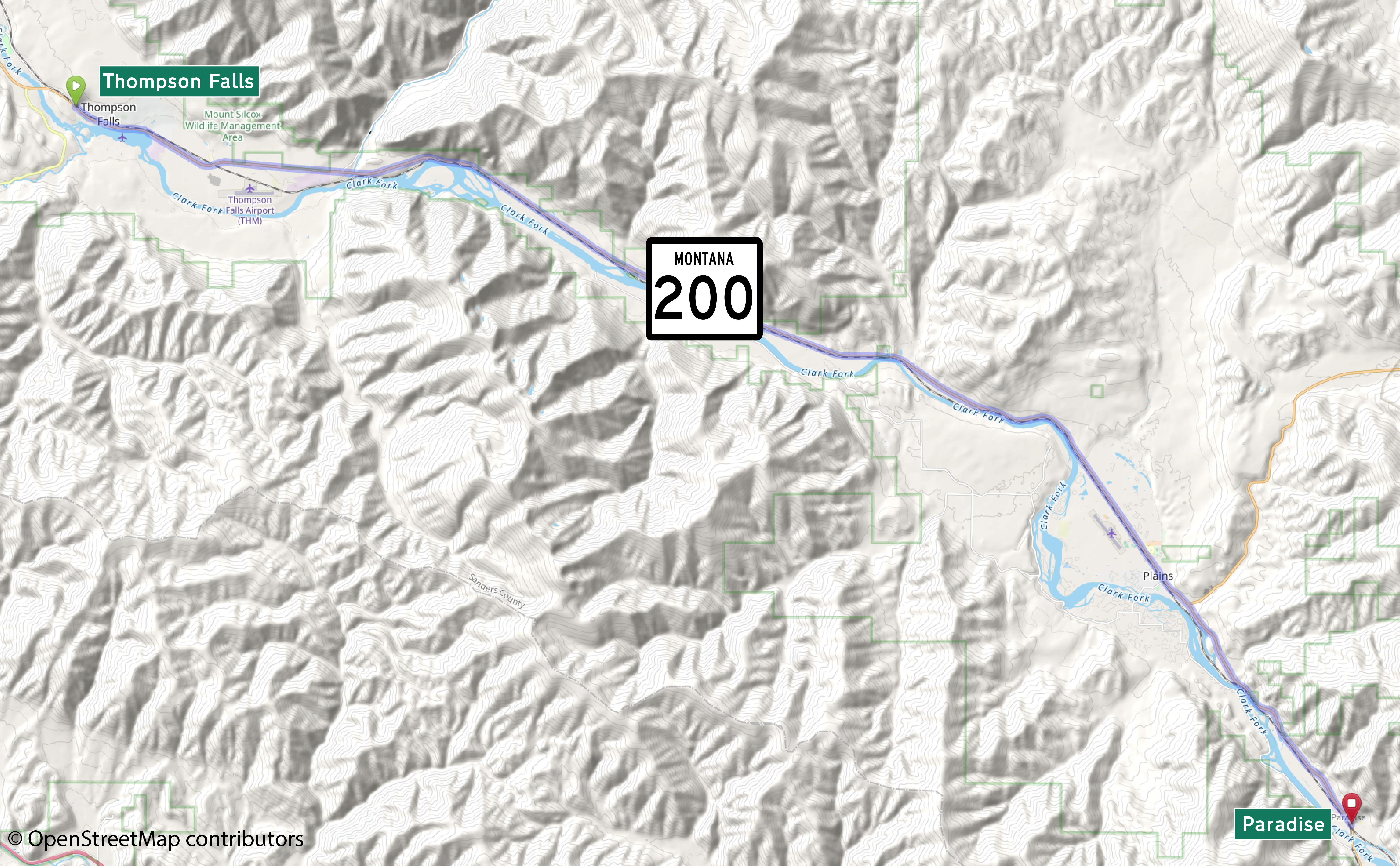 This American auto trail begins in Thompson Falls, Montana, and follows the Clark Fork River east to Paradise.