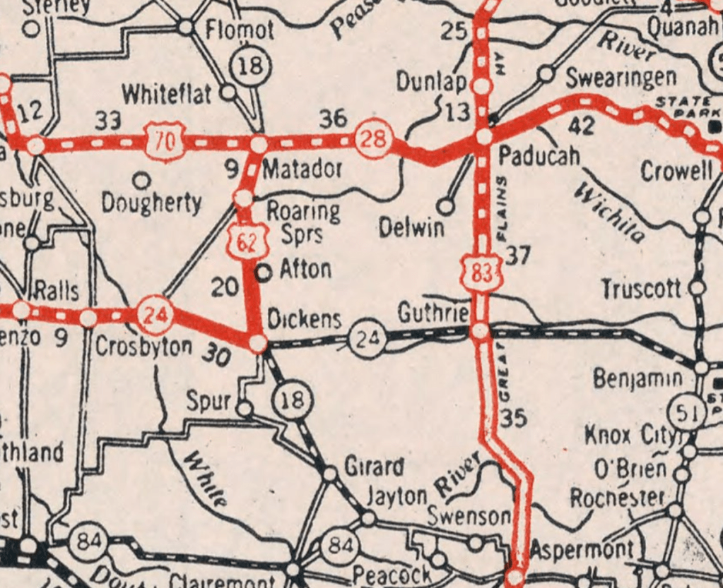 This American auto trail begins in Dickens, Texas, which lies sixty miles east of Lubbock.