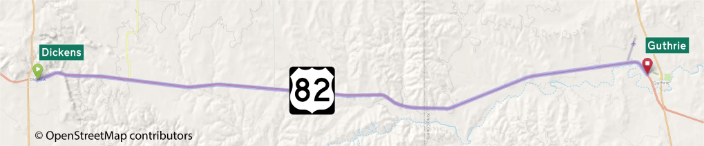 The travel route follows U.S. Highway 82 east to Guthrie.