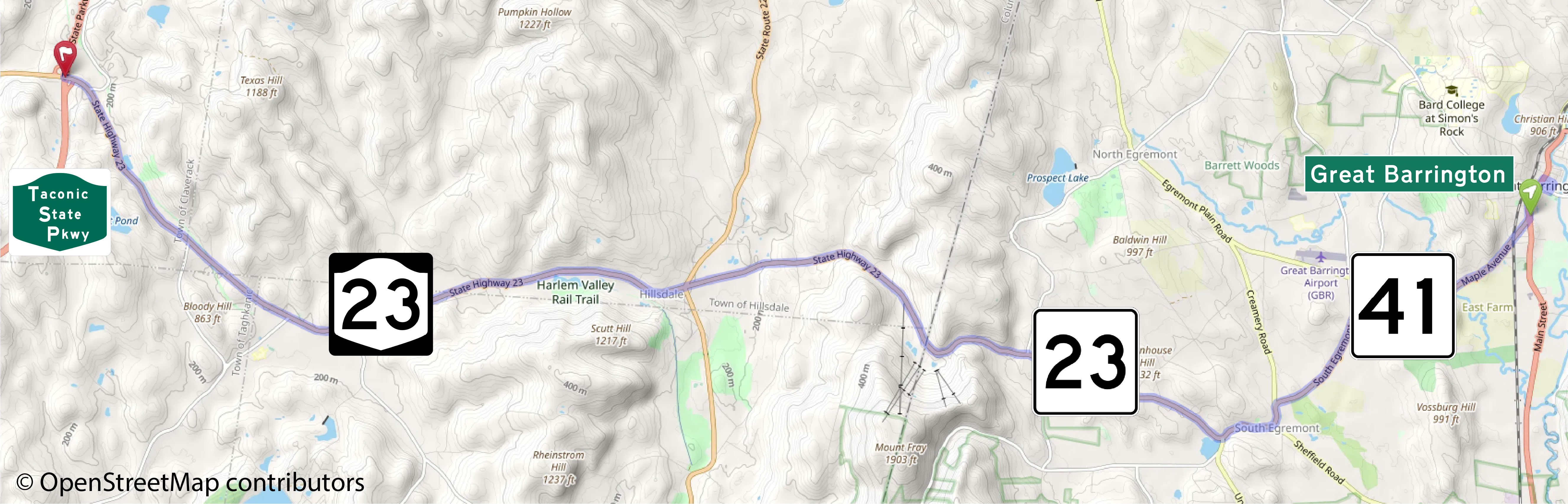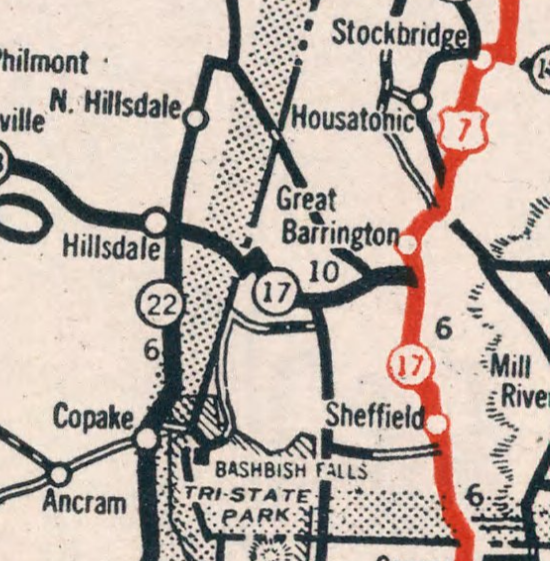 This American auto trail passes from Great Barrington, Massachusetts, to Martindale, New York, through the Taconic Mountains.