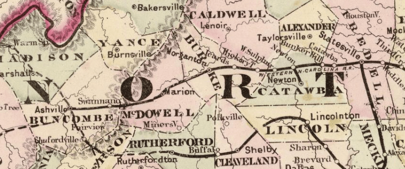 The route also closely follows the former tracks of the Western North Carolina Railroad.