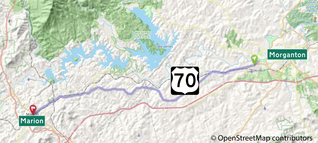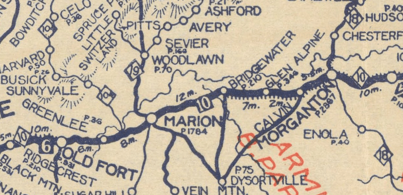 This American auto trail retraces the former Southern National Highway, from Morganton west to Marion, North Carolina.