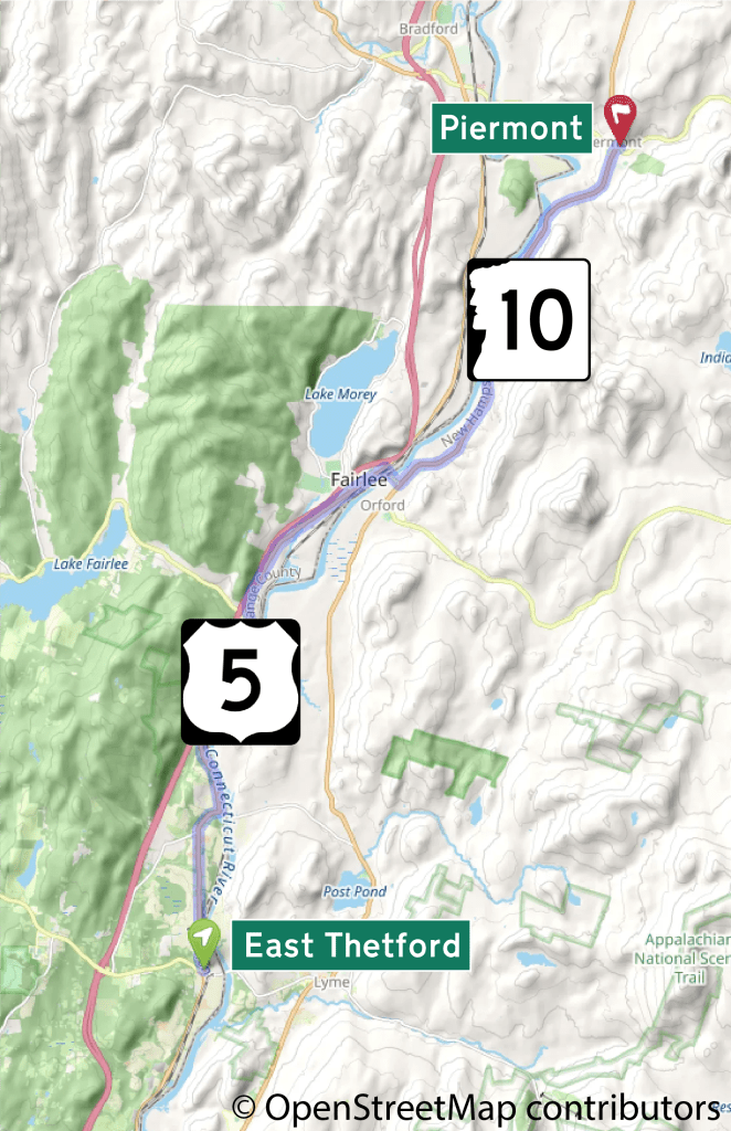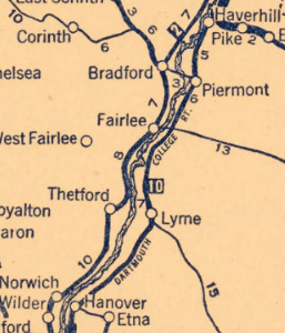 This American auto trail begins at East Thetford, Vermont, and follows the Connecticut River Valley north to Piermont, New Hampshire.