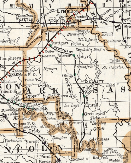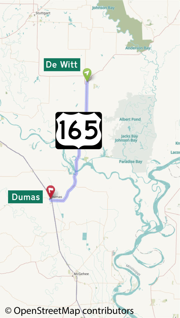 This American auto trail begins in De Witt, Arkansas, and travels south to Dumas, following the Great River Road.